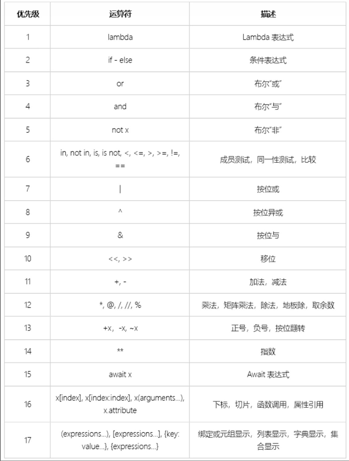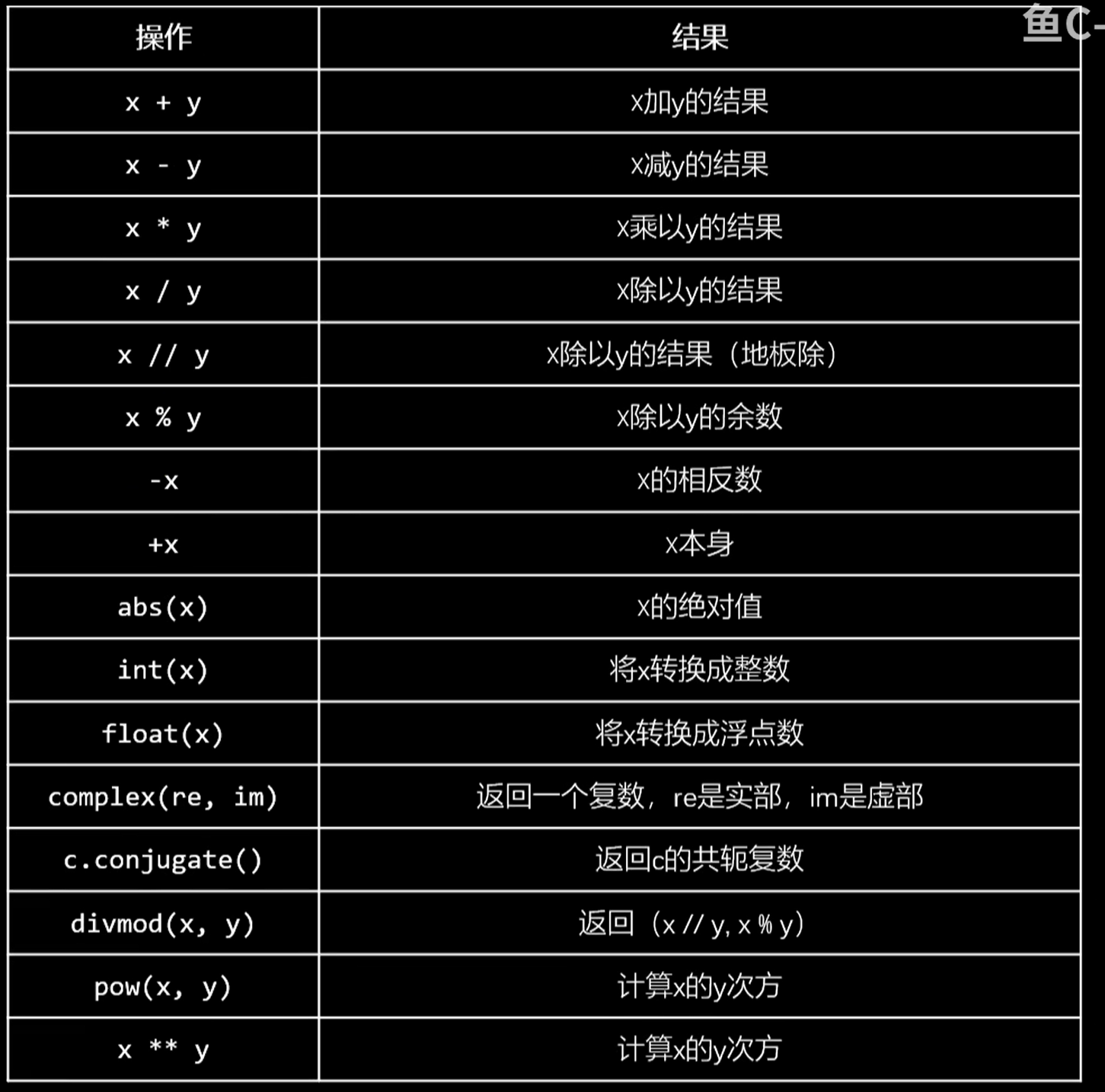 python支持的数据运算: